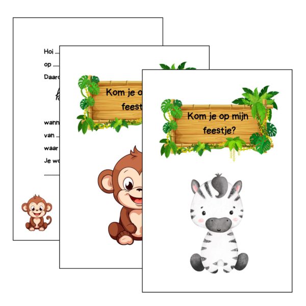 Super leuke jungle uitnodigingen voor kinderfeestjes.